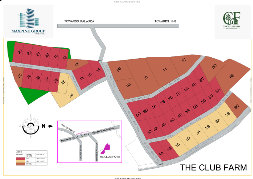 The Club Farm, developed by Maxpine Group, is a premium farming project located near the sacred Ghats of Garh Mukteshwar Brijghat along the River Ganga in extended Delhi-NCR. It focuses on white sandalwood farming for spiritual living, environmental wellness, and wealth generation, with instant registry, mutation, and legal ownership. Plots support farming activities, backed by infrastructure like a 25-acre 5-star resort, 5-acre wellness centre, and 5-acre Sanskar School.